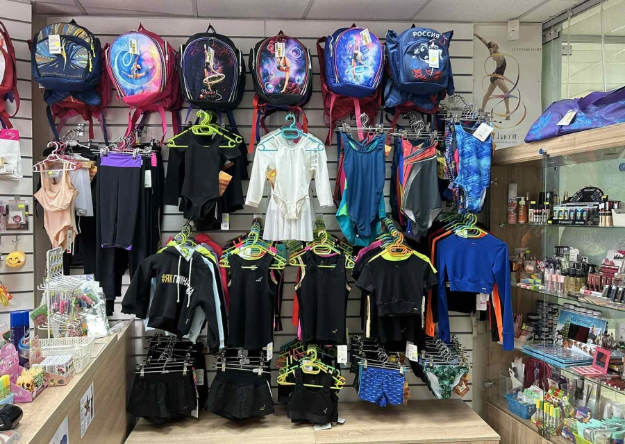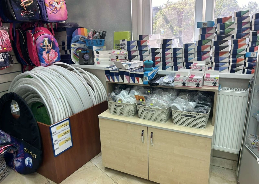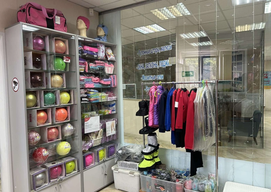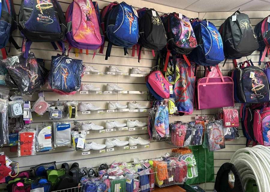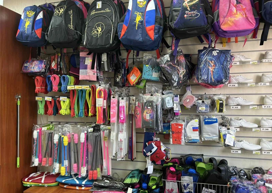 Здесь вы можете приобрести товары для • художественной, эстетической и спортивной гимнастики • аэробики • акробатики • акробатического рок-н-ролла • чирлидинга • плавания • фитнеса • хореографии • танцев • одежду и обувь для занятий физ.культурой в школах и садиках • косметику и аксессуары для подготовки ребенка к выступлениям • тренировочную одежду • предметы • чешки • получешки • кроссовки • наколенники • носочки и полуносочки • бутылочки для воды • полезный перекус • сувенирчики • рюкзаки • спортивные костюмы • нижнее белье • гетры • грузы • ласты, очки и шапочки для плавания • блоки и многое другое для юных спортсменов.
